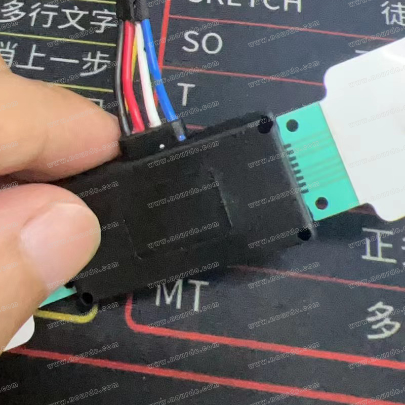采用低压注塑,将FPC软板局部包胶进行保护,起到密封、防水、抗震、阻燃(V-0)、耐候(-40℃ to +140℃)。让产品在复杂的使用环境下大大提高使用寿命。
